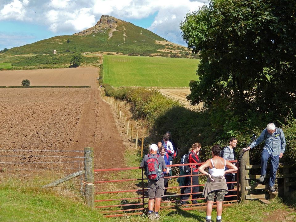 This walk is no more than 7 miles long on the northern edge of the North York Moors, but involves several long and quite steep gradients. It is split into two halves, one before lunch and the other after lunch. The first half is from a car park near Captain Cook’s Monument to Roseberry Topping, a step, craggy hill with views in all directions, then down to Great Ayton. After lunch at The Royal Oak in this village (where Captain Cook went to school) we take a long uphill trek to Captain Cook’s Monument (extensive views) then back downhill to the car park.