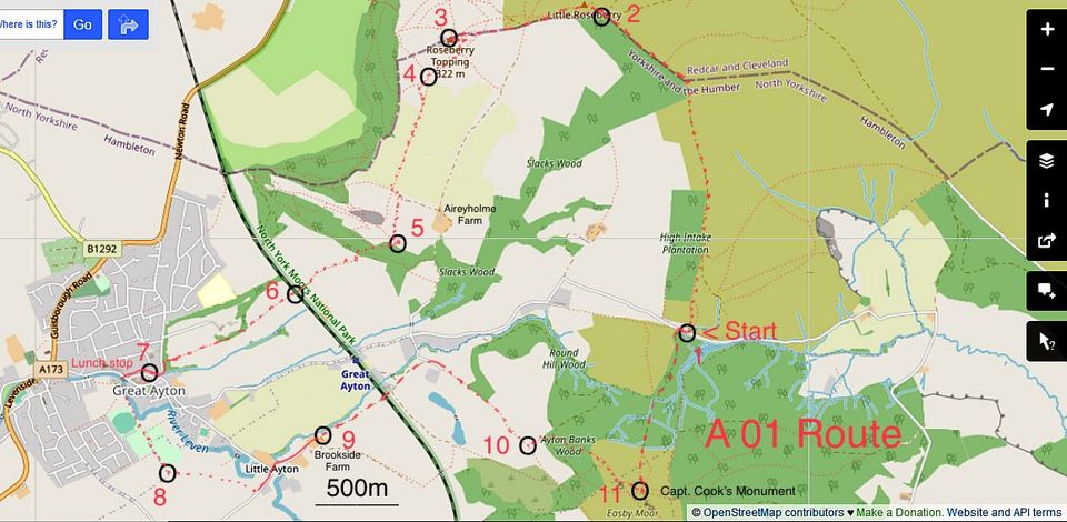 Route A01 - Roseberry Topping and Great Ayton – walk directions