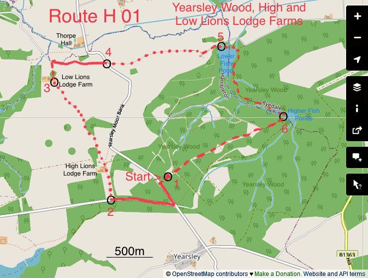 Route H 01 - High and Low Lions Lodge Farms and Yearsley Woods