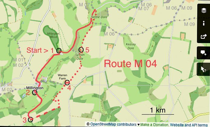 Route M 04 - Millington Wood, Millington village, Wolds Way and Millington Dale