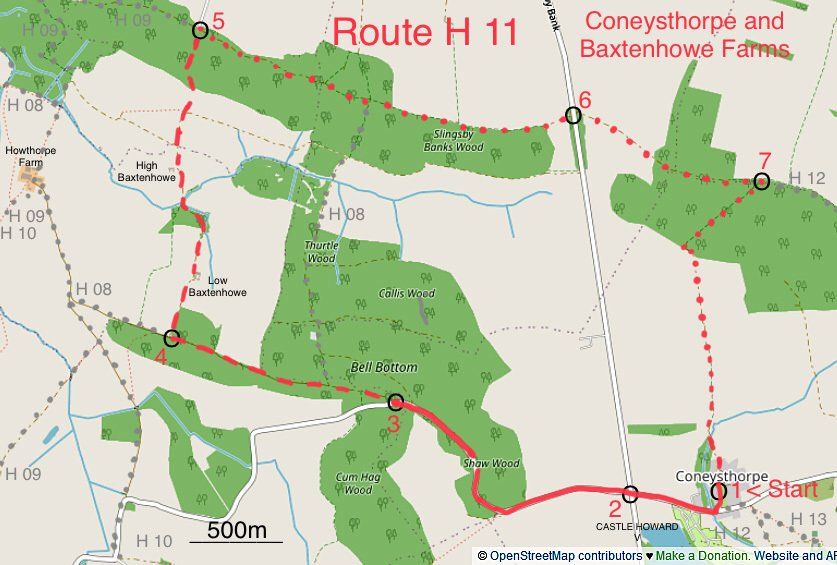 Route H 11 - Coneysthorpe, Baxtenhowe Farms & Fryton Bank Woods